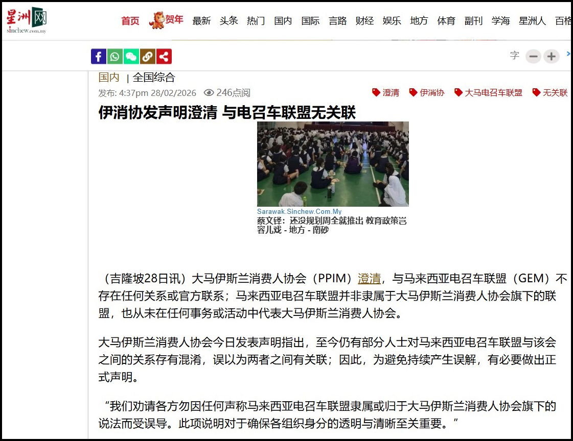 PPIM dalam satu kenyataan hari ini menyatakan bahawa sehingga kini, masih terdapat sebilangan pihak yang keliru tentang hubungan antara GEM dan persatuan tersebut, serta menganggap kedua-duanya berkaitan. Oleh itu, bagi mengelakkan kekeliruan berterusan, satu kenyataan rasmi perlu dibuat.