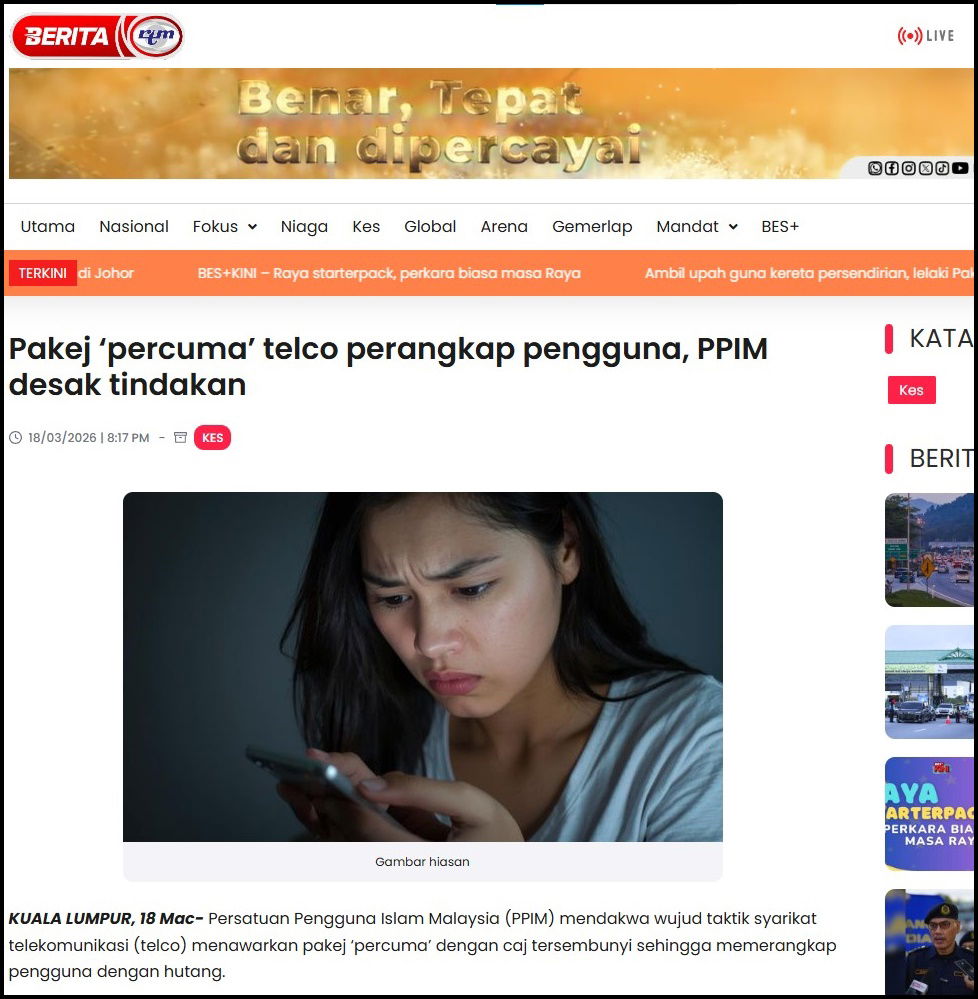 PAKEJ 'PERCUMA' TELCO PERANGKAP PENGGUNA, PPIM DESAK TINDAKAN