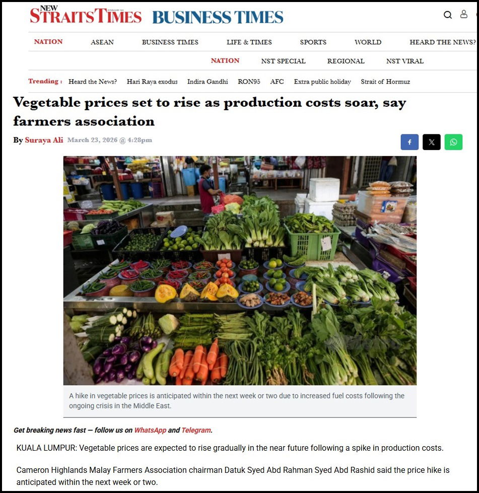 Syed Abd Rahman attributed the rising costs to the higher price of fertilisers and diesel, which are essential for operating machinery, generators, and logistics.