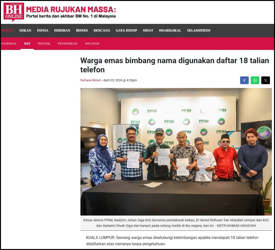 KUALA LUMPUR: Seorang warga emas diselubungi kebimbangan apabila mendapati 18 talian telefon didaftarkan atas namanya tanpa pengetahuan.