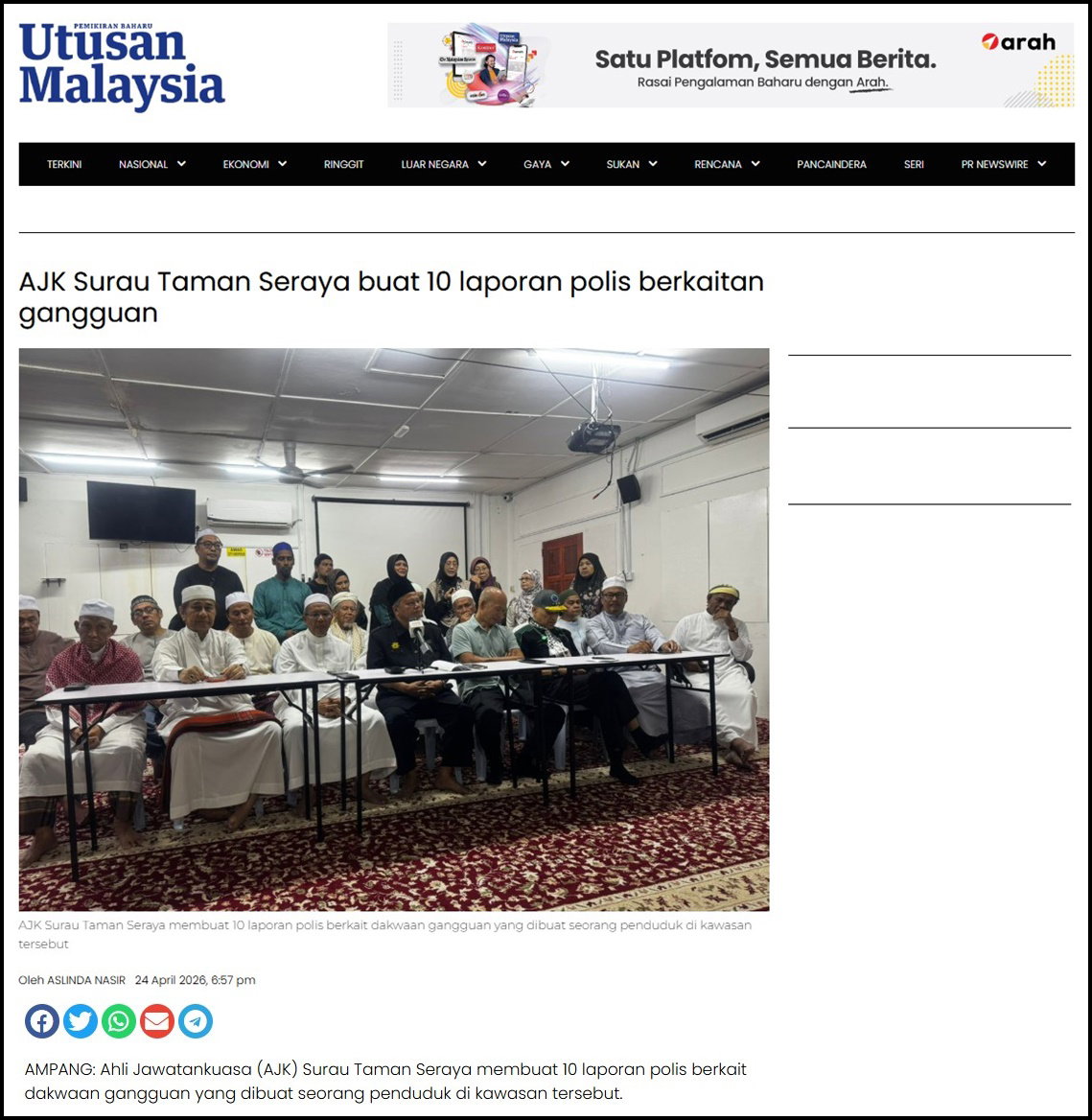 https://www.utusan.com.my/nasional/2026/04/ajk-surau-taman-seraya-buat-10-laporan-polis/