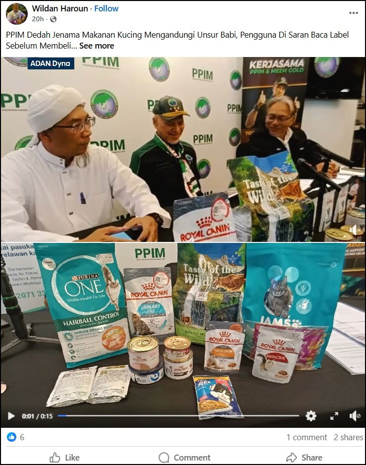 885) PPIM DEDAH JENAMA MAKANAN KUCING MENGANDUNGI UNSUR BABI, PENGGUNA DISARAN BACA LABEL SEBELUM MEMBELI - WILDAN HAROUN - 10/10/2025