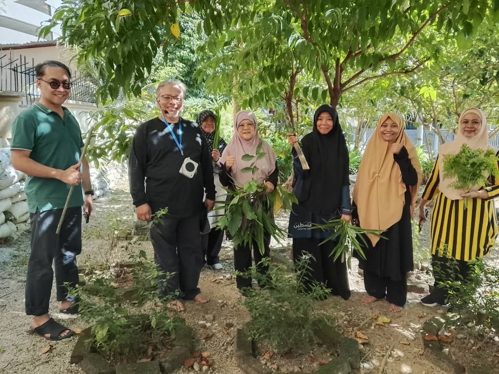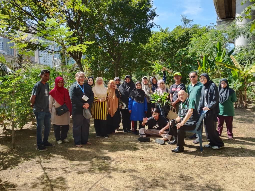 Seterusnya, aktiviti diteruskan dengan grounding untuk memberi peluang peserta merasai ketenangan alam semula jadi sambil menikmati suasana hijau kebun.