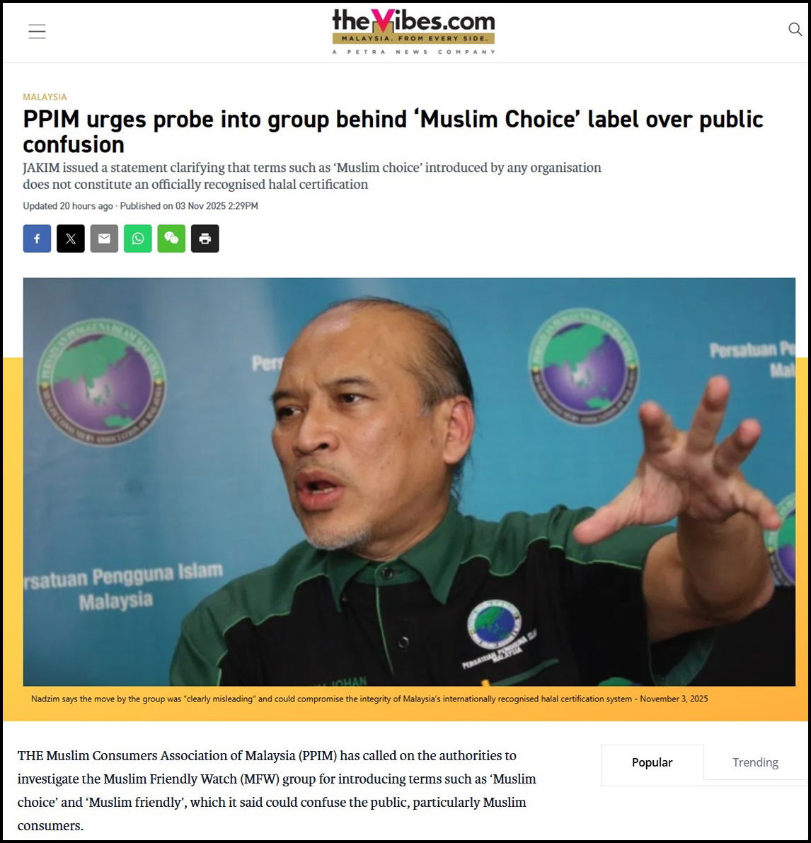 PPIM’s Chief Activist, Datuk Nadzim Johan, said the move by the group was “clearly misleading” and could compromise the integrity of Malaysia’s internationally recognised halal certification system.