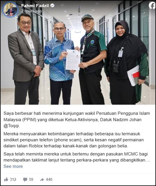 MENTERI KOMUNIKASI SAMBUT BAIK KUNJUNGAN PPIM, CADANG PENGLIBATAN DALAM FORUM KANDUNGAN MCMC