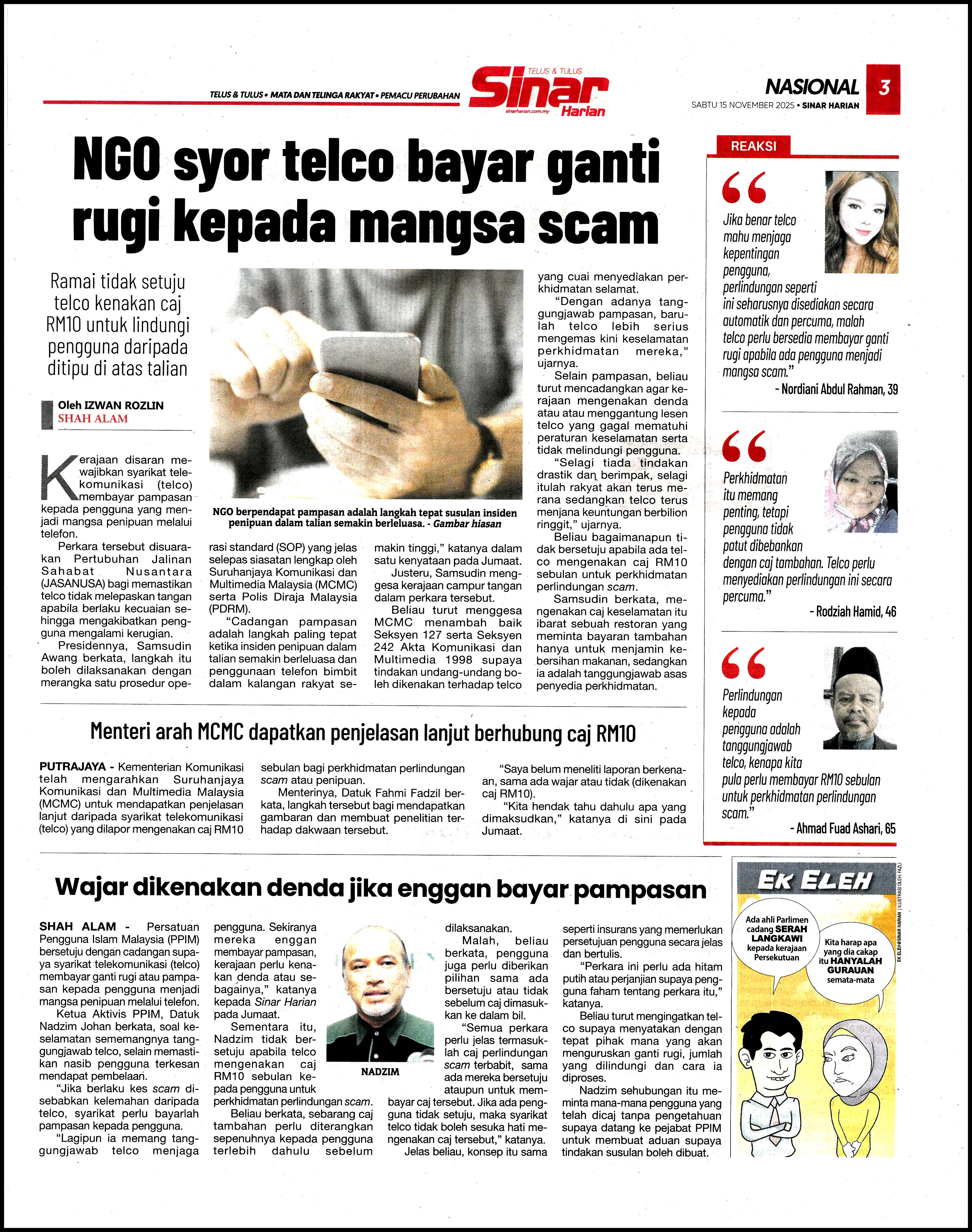 916) CADANG WAJIBKAN TELCO BAYAR PAMPASAN - SINAR HARIAN - 15/11/2025