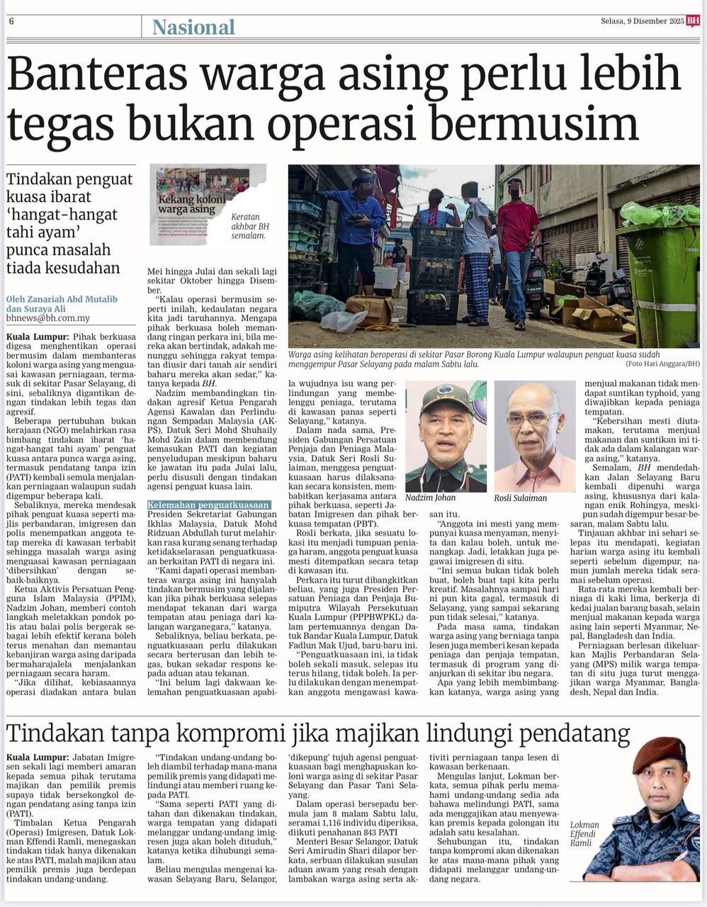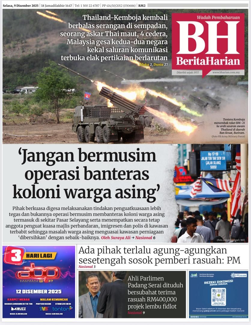 941) 'JANGAN BERMUSIM OPERASI BANTERAS KOLONI WARGA ASING' - BERITA HARIAN - 09/12/2025