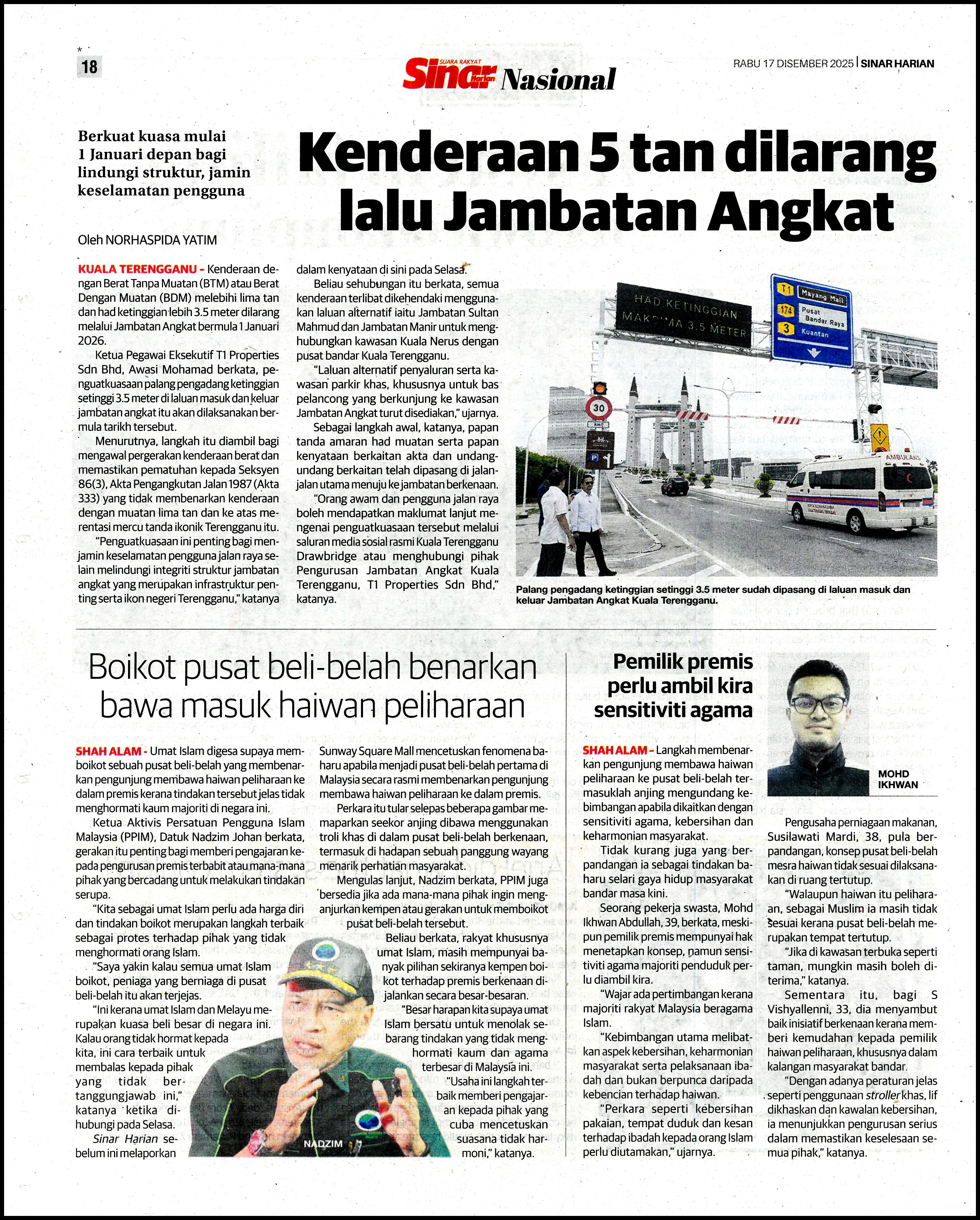 SHAH ALAM - Umat Islam digesa supaya memboikot sebuah pusat beli-belah yang membenarkan pengunjung membawa haiwan peliharaan ke dalam premis kerana tindakan tersebut jelas tidak menghormati kaum majoriti di negara ini.