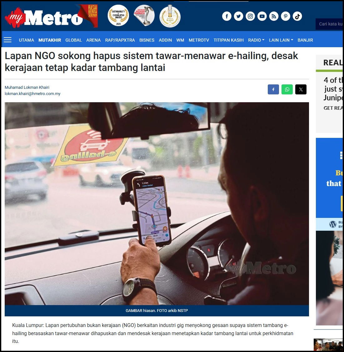 LAPAN NGO SOKONG HAPUS SISTEM TAWAR-MENAWAR E-HAILING, DESAK KERAJAAN TETAP KADAR TAMBANAG LANTAI