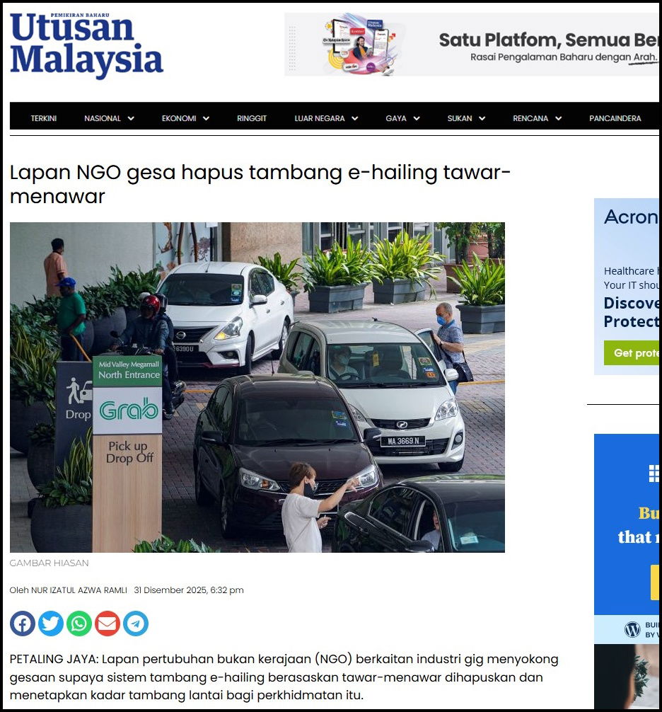 “Persaingan dalam industri sememangnya akan dijadikan alasan sebagai menguntungkan pengguna, namun kerajaan sepatutnya turut melihat kesan terhadap pemandu e-hailing.