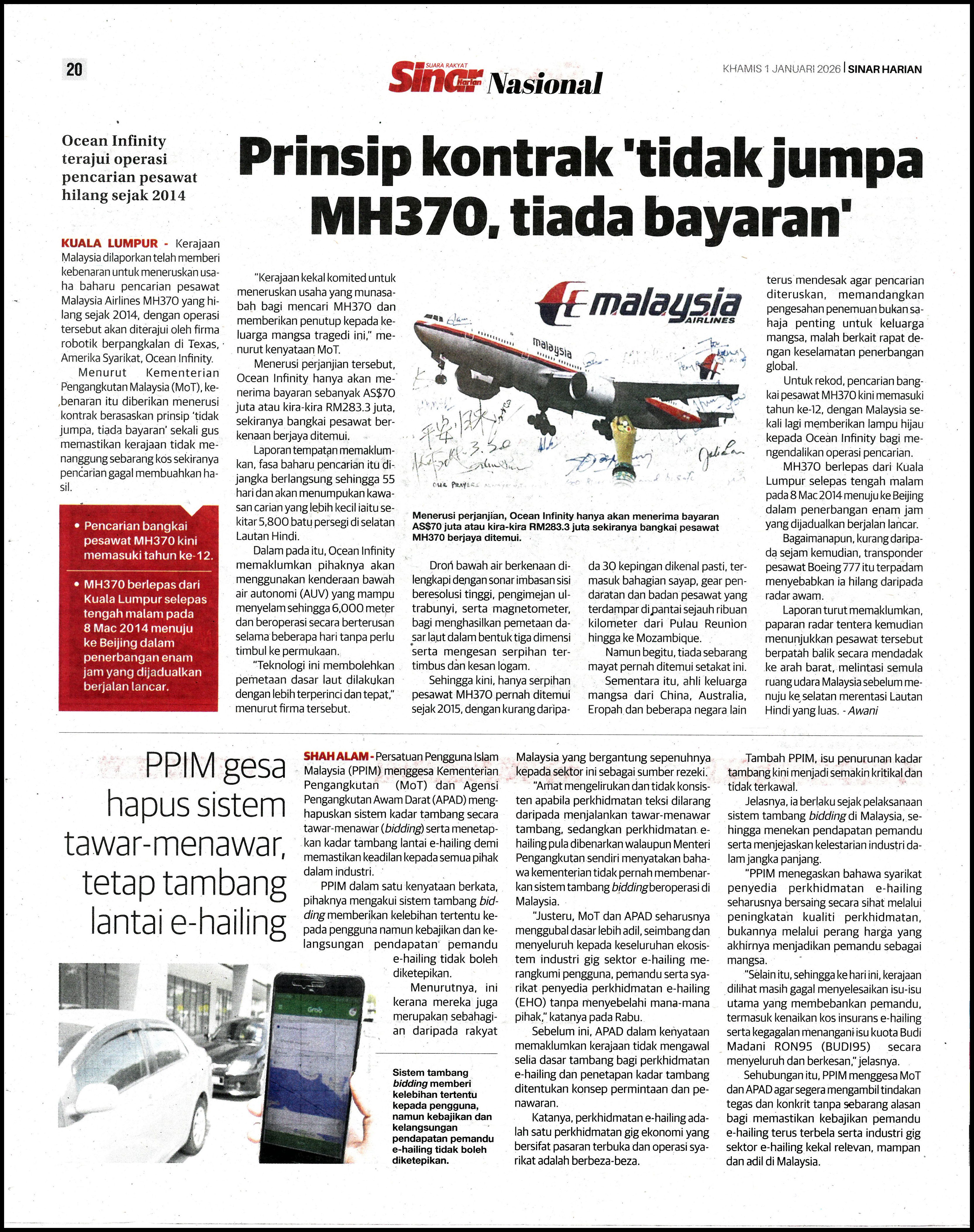 PPIM GESA HAPUS SISTEM TAWAR-MENAWAR, TETAP TAMBANG LANTAI E-HAILING - SINAR HARIAN - 01/01/2026