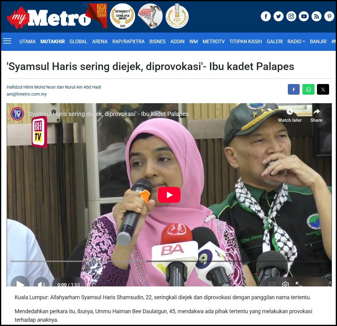 'SYAMSUL HARIS SERING DIEJEK, DIPROVOKASI' - IBU KADET PALAPES